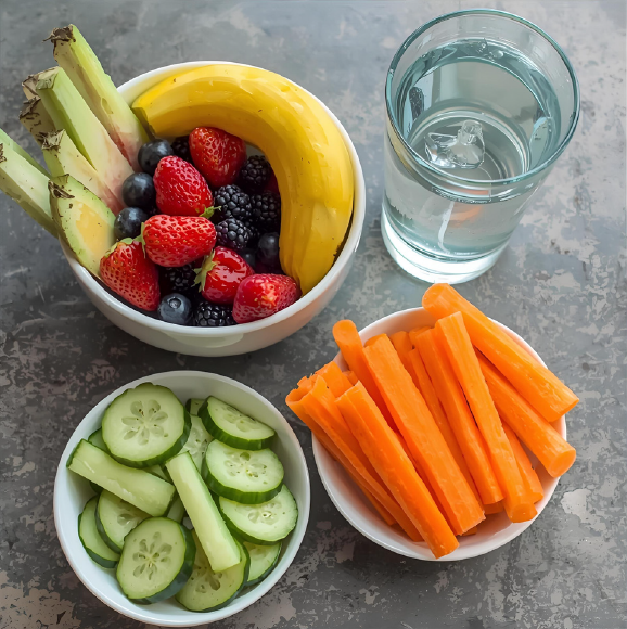 - Snacks portionieren: Nüsse, Obst oder Müsliriegel griffbereit machen